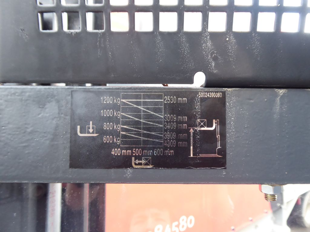 Mast: Duplex Hubhöhe: 4309 mm Freihub: 1912 mm Gabellänge: 1200 mm |